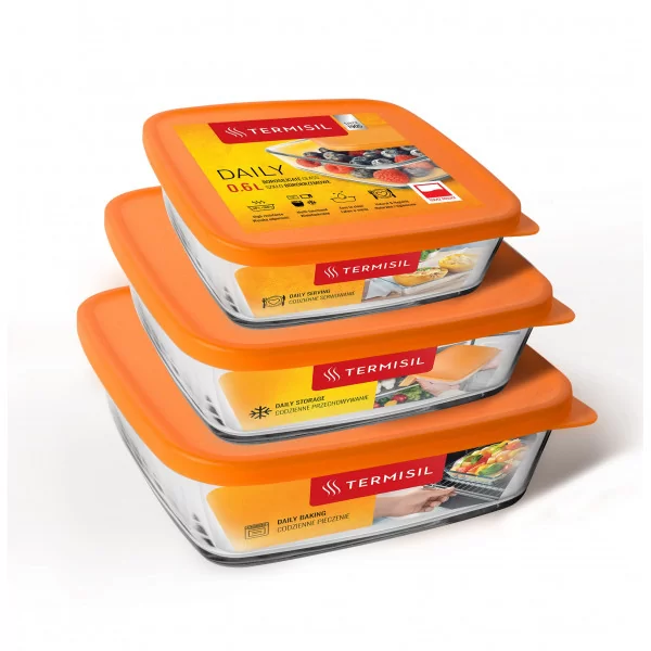 Naczynie żaroodporne z plastikową pokrywką do przechowywania z huty szkła Termisil.