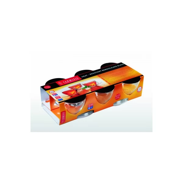 Komplet 6 filiżanek o pojemność 250 ml ze spodkiem 14,5 cm, ze szkła żaroodpornego.