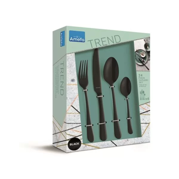 Komplet sztućców na 6 osób (24 el) czarny Amefa - Austin Vintage