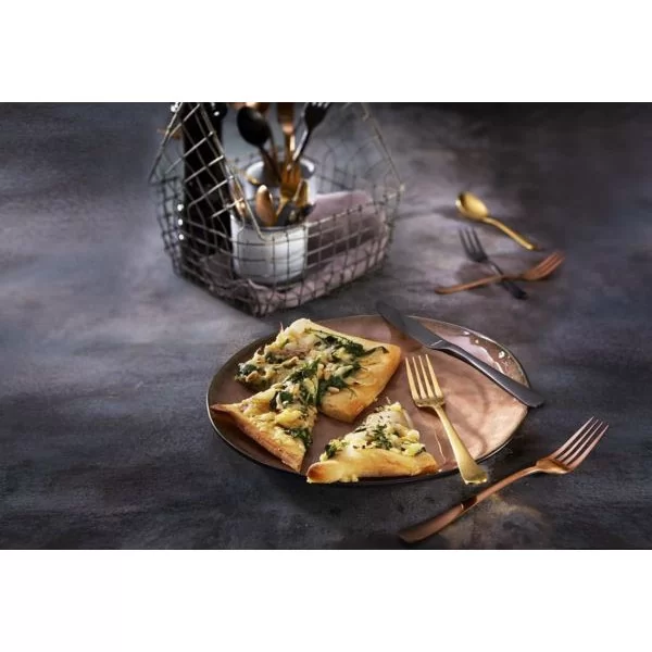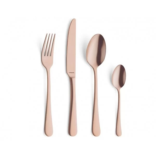 Komplet sztućców holenderskiej firmy Amefa, model Austin w modnym miedzianym kolorze.
