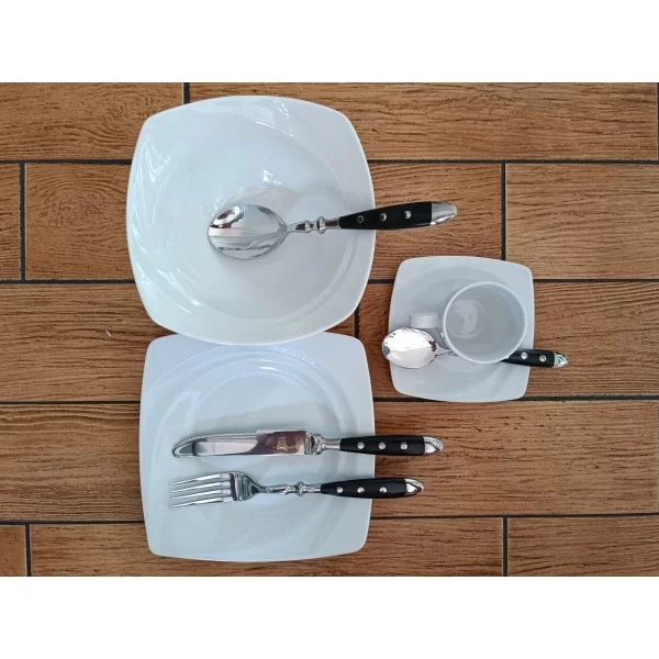 Wszechstronność: Zestaw dostępny w różnych konfiguracjach, obejmujących noże, widelce, łyżki i łyżeczki, co pozwala na dopasowanie do indywidualnych potrzeb.