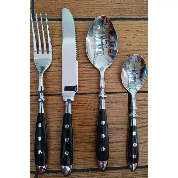 Komplet sztućców dla 6 osób, 24-elementowy, z nitowanymi rękojeściami w kolorze czarnym 18/0.