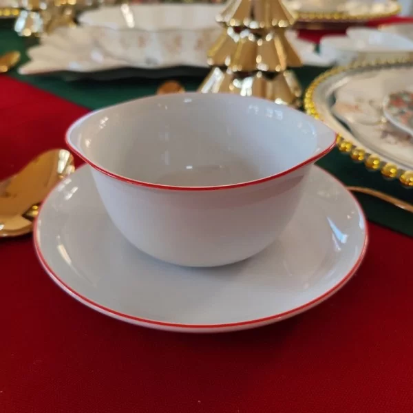 Flaczarka o pojemności 350ml ze spodkiem o średnicy 18cm.