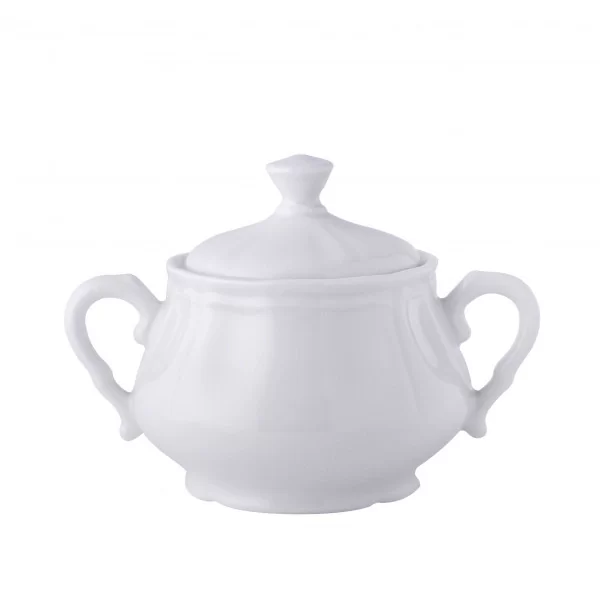 Cukiernica o pojemności 250ml z kolekcji ALBA. Producentem wyrobu są Zakłady Porcelany Stołowej "Karolina" z Jaworzyny Śląskiej.