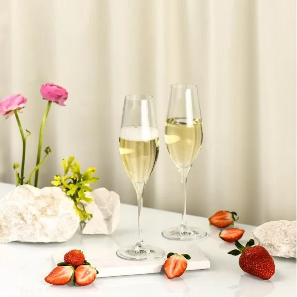 Kieliszki do szampana z kolekcji Splendour projektu Krosno Glass, to wyjątkowe szkło na każdą okazję. Szampan podany w wąskiej czarce, zwężającej się ku górze sprawi, że powoli będą się uwalniać bąbelki i każdy toast będzie wyjątkowy. Impreza rodzinna czy przyjęcie weselne będą mieć niepowtarzalny klimat, który będziemy pamiętać na długo. Szkło typu Crystalline to trwały na uszkodzenia mechaniczne materiał a jego jakość pięknie wyeksponuje zawartość kieliszków.