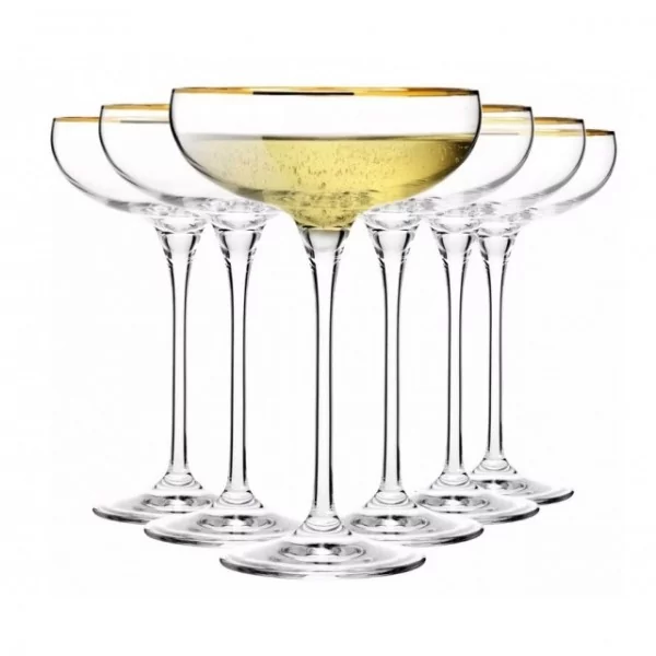 Kieliszek płaski do szampana komplet 6 sztuk, kolekcja HARMONY GOLD.