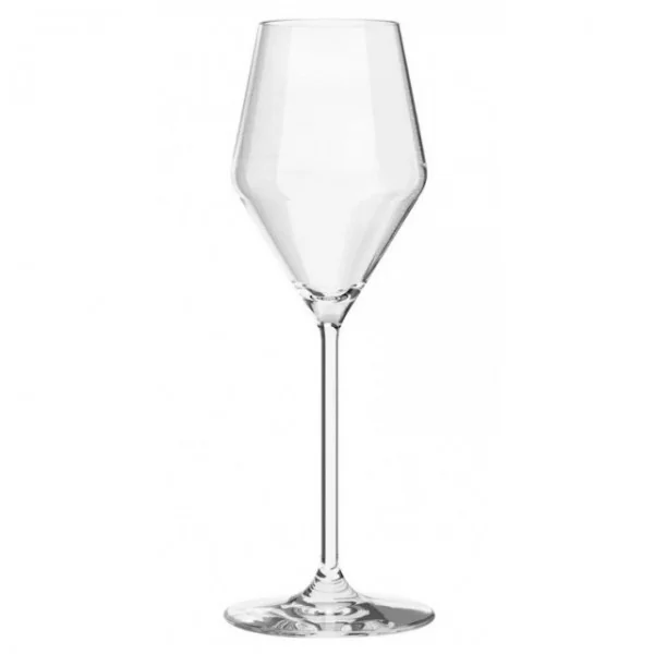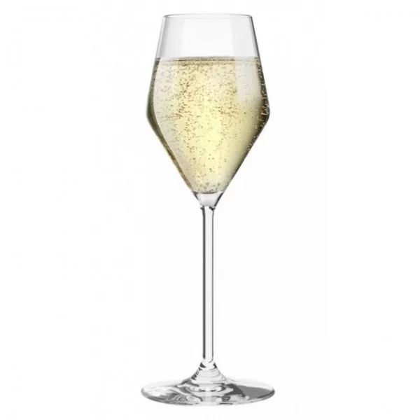 Kieliszek z kolekcji Ray o pojemności 175 ml dedykowany jest do szampana. Wysoką nóżkę na stabilnej stopce zwieńczono smukłą czarką, aby bąbelki powoli opuszczały szkło, pozwalając dłużej cieszyć się smakiem szampana. Kieliszki zostały zaprojektowane tak, by mogły się doskonale prezentować na każdym stole. Idealnie przejrzyste szkło Crystalline pięknie rozprasza światło, ponadto jest bardziej trwałe na matowienie czy uszkodzenia mechaniczne. Można myć w zmywarce.