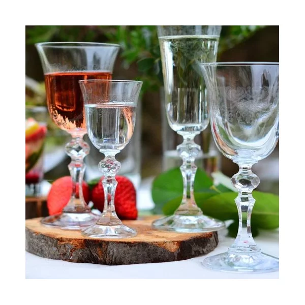 6 sztuk kieliszków do wina czarownego o pojemności 220 ml z kolekcji Krista Deco, wyprodukowane przez polską renomowaną hutę Krosno Glass, są znane i doceniane przez klientów za swoją klasyczną formę. Unikatowy i rozchylany kształt czarki kieliszka w kształcie tulipana ozdobionego bezbarwnym ornamentem, łączący się z nóżką ozdobioną szlifowaną kostką, na kształt diamentu. Dzięki temu kieliszki są nie tylko wyjątkowe, ale również eleganckie. Szkło Crystalline jest bardzo trwałe i odporne na matowienia i szkodzenia mechaniczne.