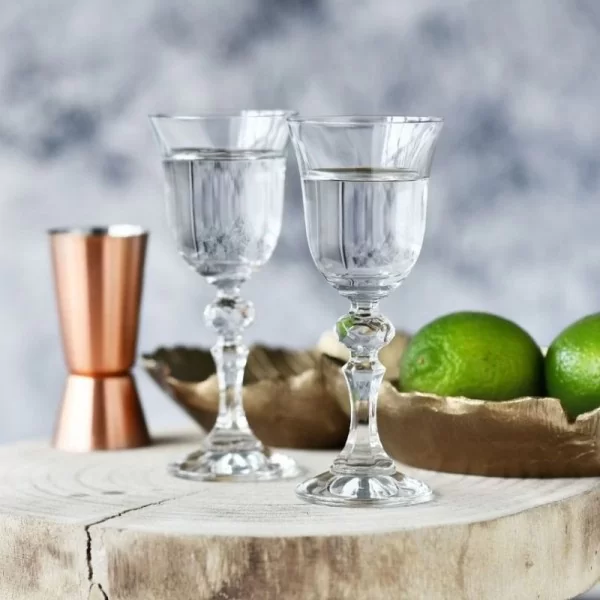 Komplet 6 kieliszków do wódki lub likieru o pojemności 50 ml. Stylowy kieliszek w kształcie tulipana. Nóżka kieliszka szlifowana w kostkę przypominająca diament. Bardzo eleganckie, pięknie będą komponować się z zastawą stołową. Klasyczny styl kolekcji Krista wyprodukowany przez Krosno Glass, to jedna z najbardziej znanych linii kieliszków na rynku. Jedną z najważniejszych cech szkła Crystalline to jego przejrzystość, szkło pięknie rozprasza światło i daje wyjątkowy efekt wizualny.