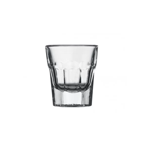 Kieliszek do wódki bez nóżki, typu shot o pojemności 36 ml. Wykonany z wytrzymałego szkła hartowanego o wysokiej przejrzystości.