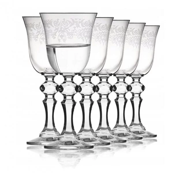 Komplet 6 kieliszków do wódki lub likieru o pojemności 50 ml. Stylowy kieliszek w kształcie tulipana ozdobiony bezbarwnym ornamentem. Nóżka kieliszka szlifowana w kostkę przypominająca diament. wysoka nóżka zapobiega ogrzewaniu alkoholu i ułatwia trzymanie kieliszka. Kieliszki są bardzo eleganckie i pięknie będą komponować się z zastawą stołową. Klasyczny styl kolekcji Krista Deco wyprodukowany przez Krosno Glass, to jedna z najbardziej znanych linii kieliszków na rynku.