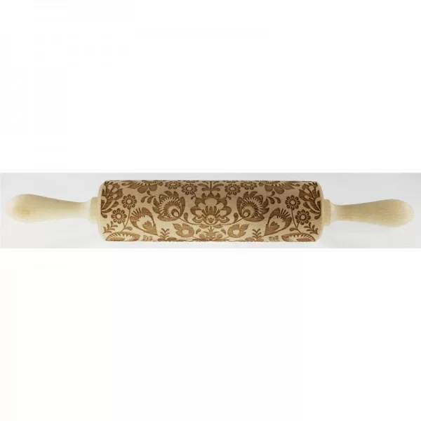 Ekologiczny drewniany, grawerowany wałek wzorem FOLKLOR.