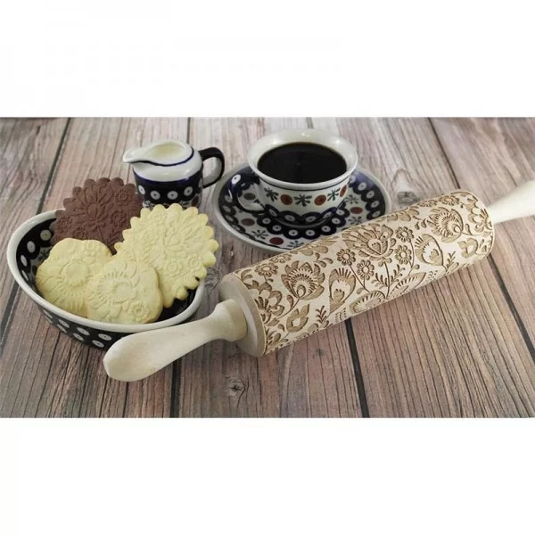 Ekologiczny, dekoracyjny wałek do ozdabiania ciastek. Wykonany z najwyższej jakości drewna i zdobiony techniką laserową. Wałkując ciasto na ciasteczka jednocześnie dekorujesz je łowickim kwiatowym wzorem. Tak zrobione ciastka wywołają uśmiech na twarzy każdego amatora słodyczy.