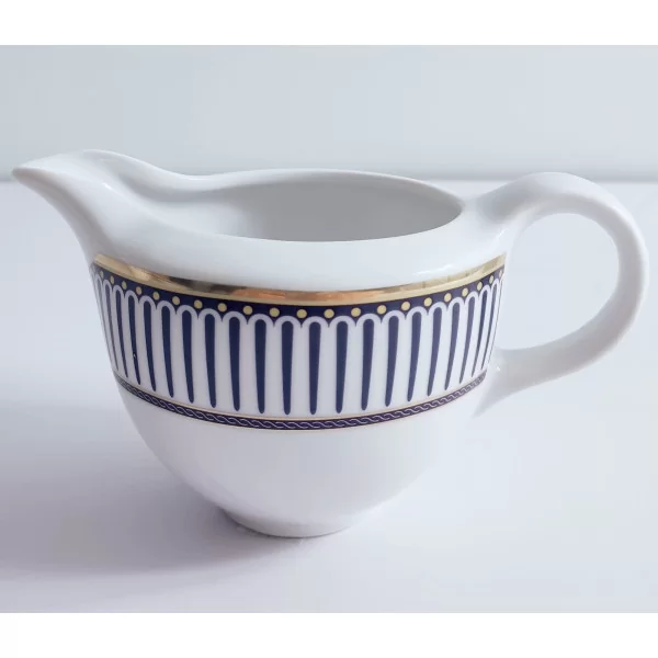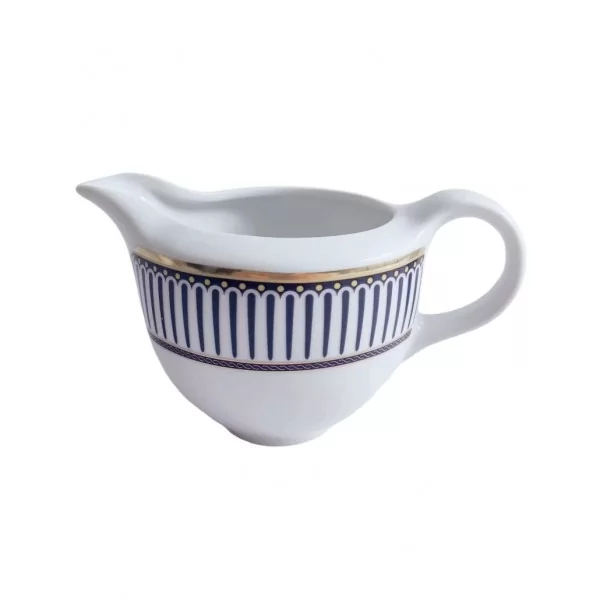 Porcelanowy dzbanuszek o pojemności 270 ml. Wykonany z białej porcelany z kobaltowymi i złotymi zdobieniami. Dzbanuszek będzie idealnie nadawał się do podania mleka lub np. owocowych sosów do deserów.