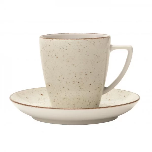 Filiżanka do kawy Beata o smukłym kształcie i pojemności 200 ml, w komplecie ze spodkiem Sonia o średnicy 14 cm.