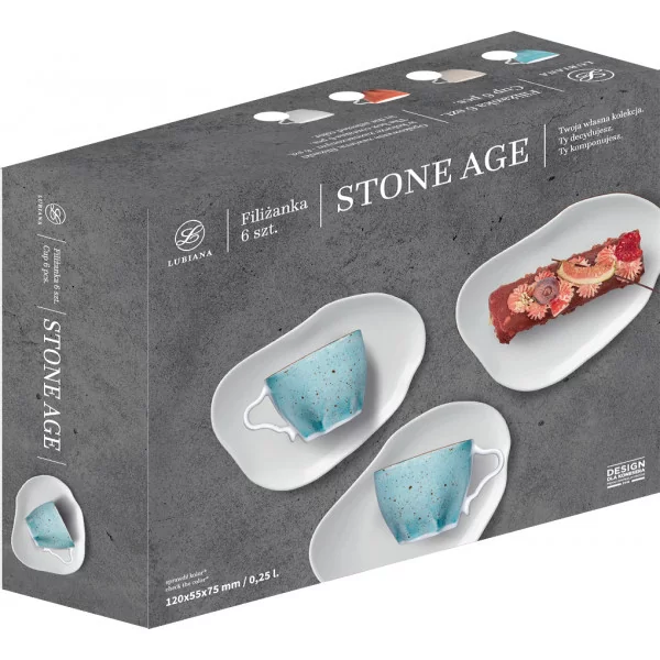 Stone Age to najnowsza kolekcja porcelany Lubiana. Ekstrawagancka i nowoczesna, swoimi nieregularnymi kształtami przewrotnie nawiązuje do epoki kamienia. Nawiązuje formą do natury, pradawnych tradycji rzemieślniczych, kiedy każdy przedmiot był ręcznie wykonany – wyjątkowy i jedyny w swoim rodzaju.