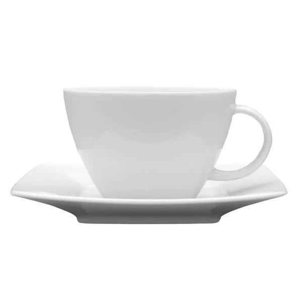 Porcelanowa filiżanka ze spodkiem o pojemności 240 ml. Idealna do podania kawy typu cappuccino. Dzięki swojemu prostemu stylowi będzie pasowała do każdego wnętrza. Sprawdzi się zarówno na co dzień jak i podczas rodzinnych uroczystości.