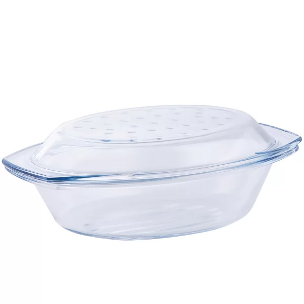 Naczynie żaroodporne wykonane ze szkła borokrzemowego o pojemności 2,9l. Eleganckie wzornictwo, unikatowe cechy szkła borokrzemowego, wytrzymałość, odporność na wysokie i niskie temperatury.