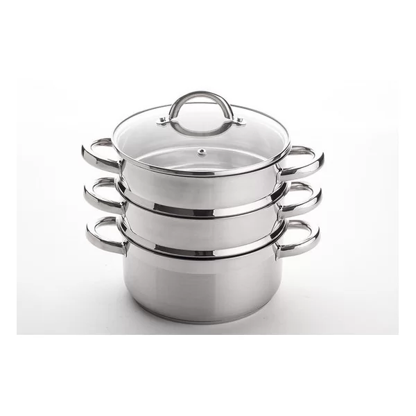 Garnek do gotowania na parze ze stali nierdzewnej ze szklaną pokrywką.