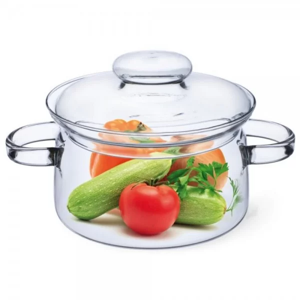 Garnek wykonany z szkła żaroodpornego o pojemności 2L.