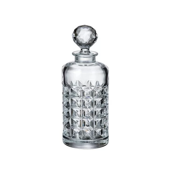 Kryształowa karafka do whisky z nieskazitelnie przejrzystego i lśniącego szkła pięknie wyeksponuje przechowywany w niej trunek. Szczególnie polecamy podanie w niej whisky, burbona lub brandy. Oczywiście tradycyjne nalewki owocowe równie pięknie będą się w niej prezentować, gdyż charakterystyczne diamentowe cięcia w przepiękny sposób załamują światło roztaczając blask po całym pomieszczeniu.