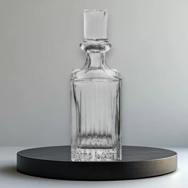 Elegancka karafka z korkiem o solidnej, kwadratowej podstawie, pochodząca z renomowanej marki Zawiercie, wyróżnia się niezwykłą precyzją wykonania oraz dbałością o najmniejsze detale.