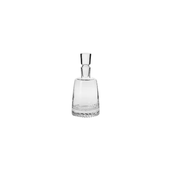 Ekskluzywna karafka do whisky z linii Fjord z charakterystycznymi wgłębieniami przywodzącymi na myśl kryształki lodu w grubym dnie i solidnym, szczelnym, szklanym korkiem zachwyca stylem. To nie tylko praktyczne, ale i eleganckie uzupełnienie stołu, otwartego barku, czy witryny, stworzone z myślą o prawdziwych miłośnikach wytwornego trunku. Stylową formę i wyrazistą, chropowatą strukturę w dnie wykonano tradycyjną metodą ręczną, co sprawia, że karafka jest niepowtarzalna, a jej detale docenią osoby wrażliwe na kunszt. Idealnie przejrzyste szkło Crystalline pięknie rozprasza światło, pozwalając nie tylko przyjrzeć się dokładnie trunkowi, ale także zaobserwować ciekawe efekty odbijania światła w ozdobnej podstawie. Karafka jest także wyjątkowo odporna na matowienie czy uszkodzenia mechaniczne. Najlepiej prezentuje się w zestawie ze szklankami z tej samej linii, ale sama również będzie piękną, funkcjonalną ozdobą.