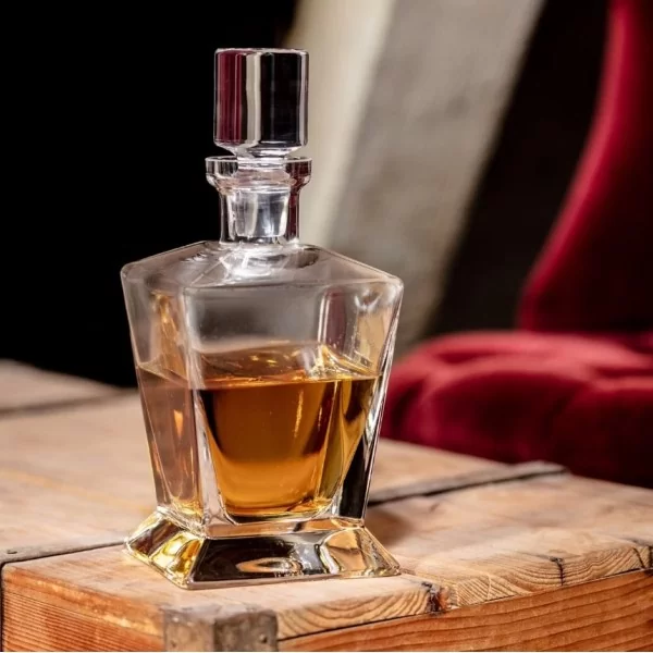 Wytworna i klasyczna karafka z korkiem o pojemności 750 ml, do serwowania whisky lub burbona. Karafka wykonana z idealnie przejrzystego szkła dzięki temu idealnie podkreśla barwę tego wytwornego trunku. Będzie pięknie prezentować się w każdym wnętrzu, zarówno tym klasycznym jak i bardziej nowoczesnym.