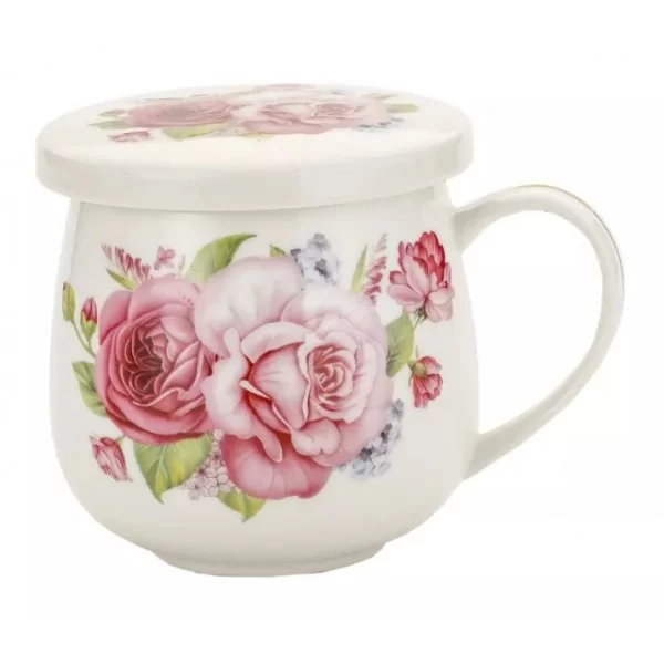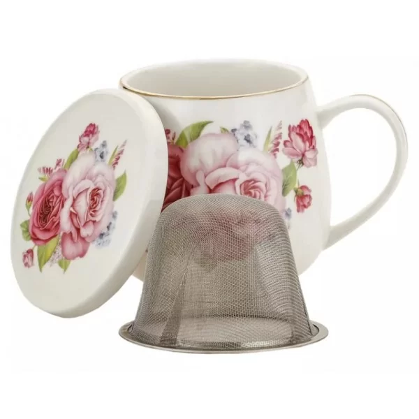 Porcelanowy kubek o pojemności 380 ml z zaparzaczem i przykrywką. W zestawie znajduje się stalowy zaparzacz do herbaty liściastej, który umożliwia wygodne parzenie ulubionych naparów bez fusów. Praktyczna pokrywka nie tylko utrzymuje ciepło napoju, ale może również służyć jako podstawka pod zaparzacz po jego wyjęciu.