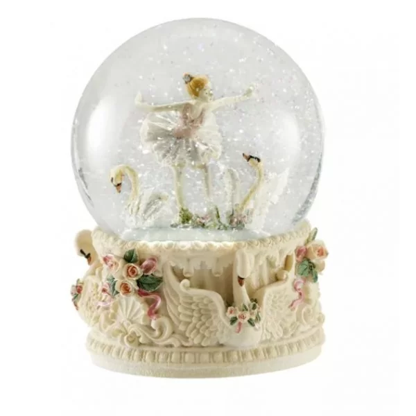 Piękna szklana kula - pozytywka SWAN LAKE z baletnicą i łabędziami. Po nakręceniu kula z baletnica się obraca, a pozytywka gra melodię z baletu "Jezioro łabędzie". Przy poruszaniu w kuli unosi się też delikatny brokat. Dół kuli w kolorach kremowym i różowym jest bardzo ładnie zdobiony. Pomysł na wyjątkowy prezent dla dziewczynki zwłaszcza zainteresowanej tańcem.