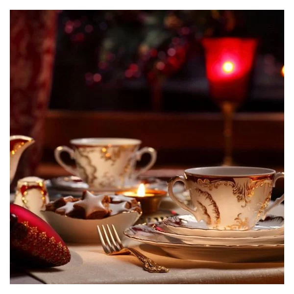 Zestaw obiadowy na 12 osób marki Ćmielów został zaprojektowany z myślą o większych rodzinach, a także uroczystych spotkaniach. Jego wyglądem zachwyceni są prawdziwi koneserzy tradycji oraz wyrafinowanych form. To nie kolejny zwykły serwis obiadowy – ten zachwyca finezyjnymi zdobieniami i królewskim stylem. Każdy talerz tudzież półmisek zdobiony jest ręcznie przez artystę, co sprawia, że zastawa jest jedyna w swoim rodzaju. Oprawa serwisu obiadowego Rococo Purpura marki Ćmielów wykonana została z użyciem 24-karatowego złota, jak też purpurowych akcentów, dzięki czemu dla wielu pozostaje prawdziwym dziełem sztuki.