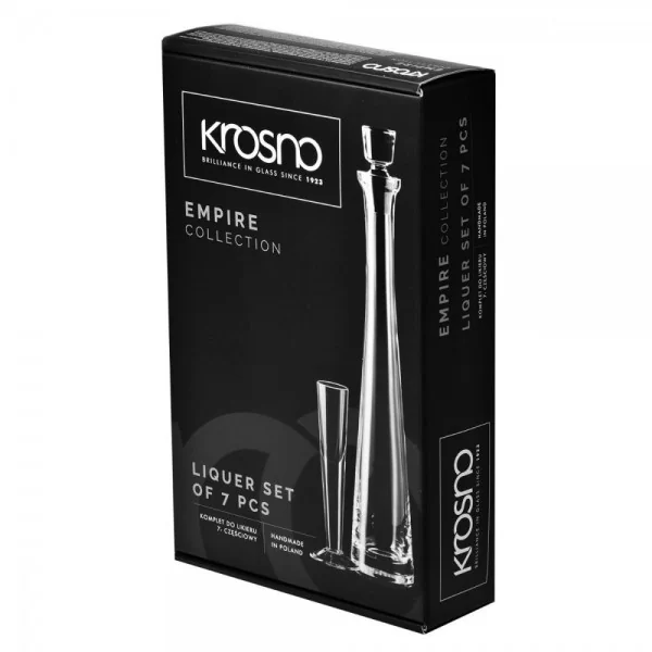 Komplet 6 sztuk kieliszków do likieru lub sherry z kolekcji LIQUEUR o pojemności 30ml z karafką o pojemności 300ml. Producentem jest Krosno Glass.