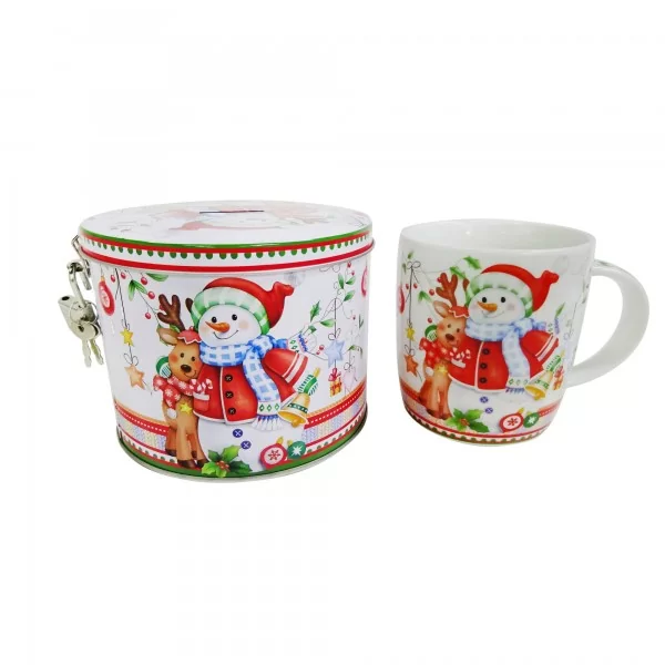 Kubki zapakowane są w skarbonki z takim samym motywem jak na kubku. Skarbonkę będzie można wykorzystać na zbieranie oszczędności albo do przechowywania np. słodyczy od Mikołaja.