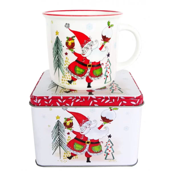 Porcelanowy świąteczny kubek o pojemności 420 ml umili najmłodszym członkom rodziny oczekiwanie na Święta Bożego Narodzenia. Podana w nich gorąca czekolada lub kakao wywołają uśmiech na twarzy. Kubki zapakowane są w ozdobną puszkę, którą można wykorzystać do przechowywania np. słodyczy od Mikołaja.
