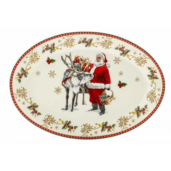 Świąteczny porcelanowy półmisek o długości 30 cm z motywem Mikołaja.