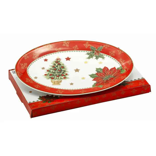 Świąteczny porcelanowy półmisek o długości 30 cm z motywem Choinki.