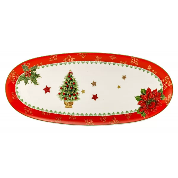Świąteczny porcelanowy półmisek o długości 40 cm z motywem Choinki.