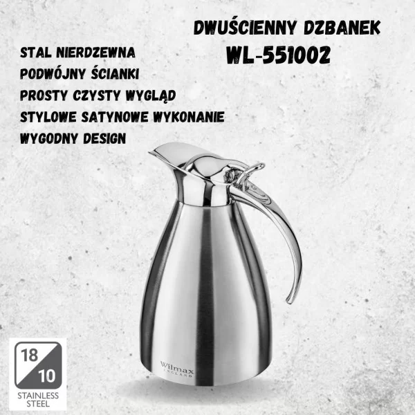 Stalowy dzbanek o pojemności 1000 ml. Wykonany ze stali nierdzewnej. Producentem wyrobu jest firma WILMAX.