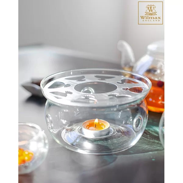 Szklany podgrzewacz uniwersalny do dzbanków. Idealnie sprawdzi się podczas jesiennych długich wieczorów. Postawiona na nim herbata w dzbanku dzięki zapalonej świeczce utrzyma dłużej swoje ciepło i będzie można delektować się jej smakiem dłużej. Dodatkowo palący się tealight wprowadzi miły nastrój w domu.