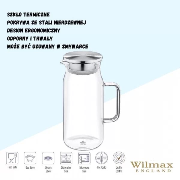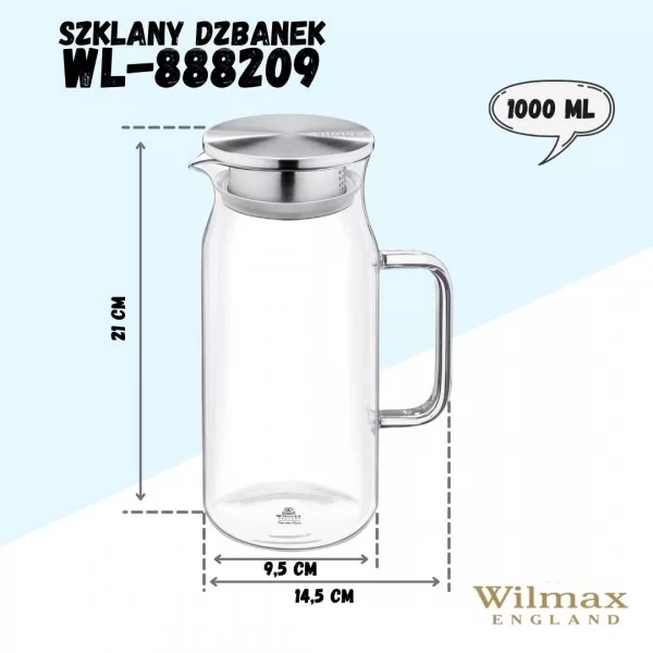 Dzbanek szklany o pojemności 1000 ml. Wykonany ze szkła żaroodpornego. Producentem wyrobu jest firma WILMAX.