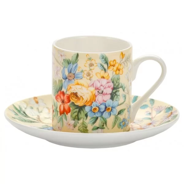 Filiżanka do espresso porcelanowa ze spodkiem 90ml z motywem kwiatowym.