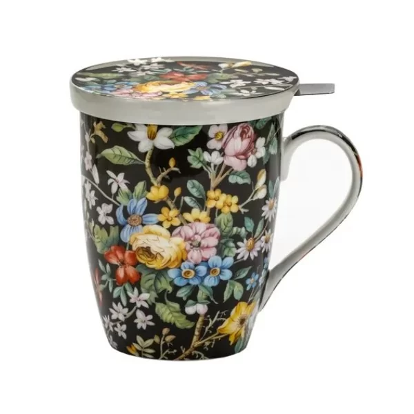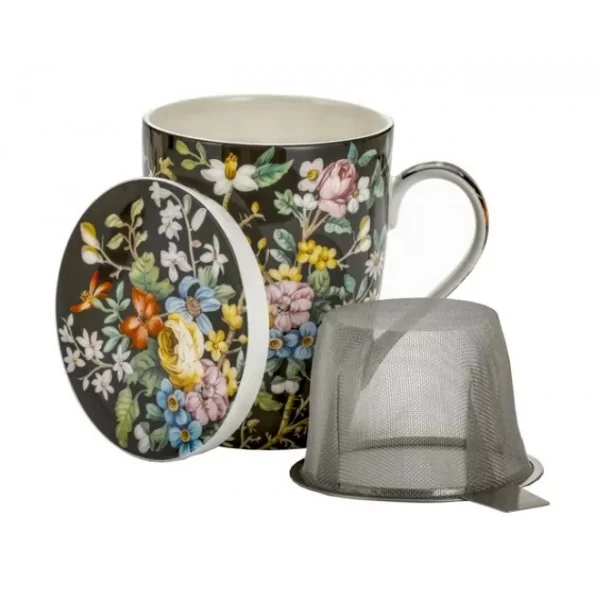 Porcelanowy kubek o pojemności 450 ml z zaparzaczem i przykrywką. W zestawie znajduje się stalowy zaparzacz do herbaty liściastej, który umożliwia wygodne parzenie ulubionych naparów bez fusów. Praktyczna pokrywka nie tylko utrzymuje ciepło napoju, ale może również służyć jako podstawka pod zaparzacz po jego wyjęciu.
