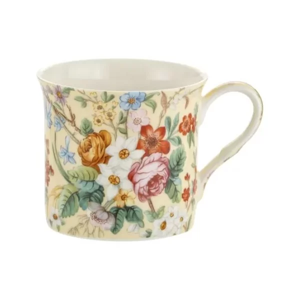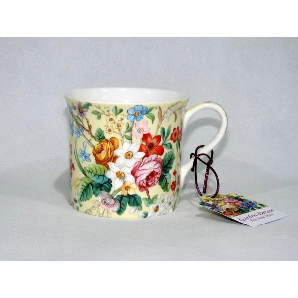 Kubek 300ml z porcelany bone china ozdobiony motywem kwiatowym. Jego pojemność idealnie sprawdzi się do parzenia kawy i herbaty.
