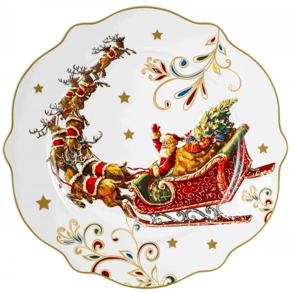 Porcelanowy talerz świąteczny z motywem Mikołaja w saniach