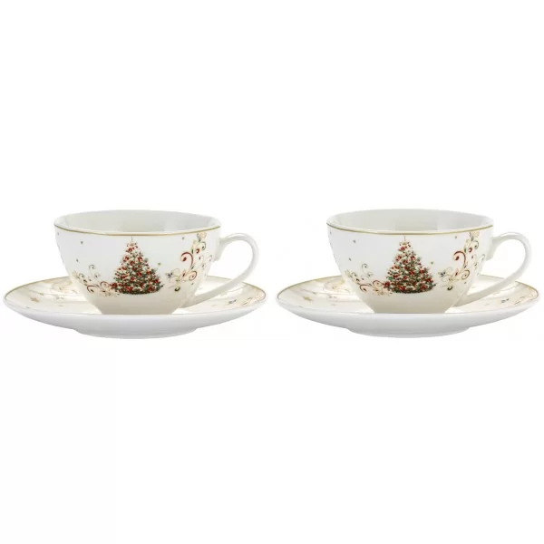 Komplet dwóch porcelanowych filiżanek "Jumbo" ze spodkami z motywem Choinki.