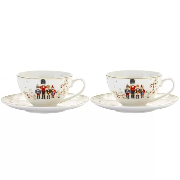 Komplet dwóch porcelanowych filiżanek "Jumbo" ze spodkami z motywem Dziadka do orzechów.
