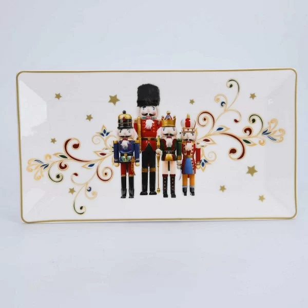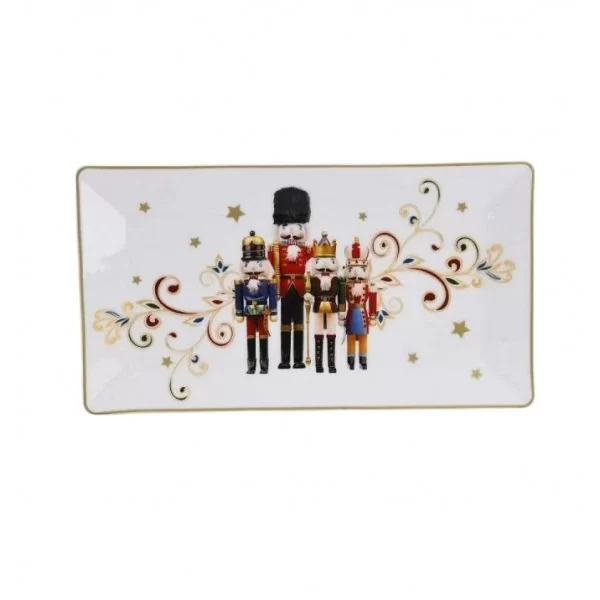 Porcelanowy, prostokątny półmisek świąteczny z motywem Dziadka do orzechów.