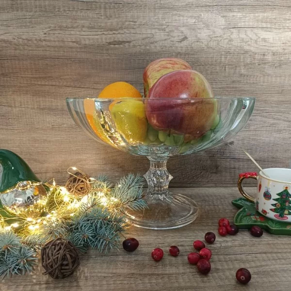 Dekoracyjna owocarka na nodze z kolekcji Hamburg, wykonana z krystaliny. Doskonale nada się do podania ciastek lub owoców.