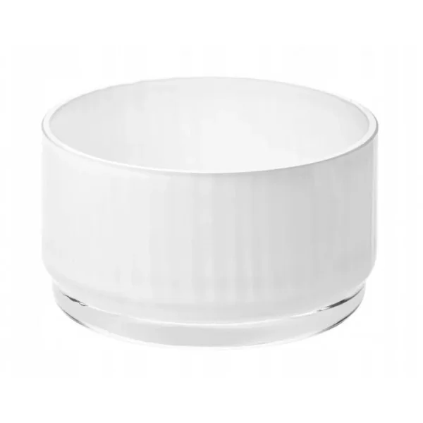 Piękna ręcznie formowana salaterka Synergy wykonana z białego szkła to piękna i niebanalna ozdoba do każdego wnętrza. Biała salaterka ma 8 cm wysokości, przy 15 cm średnicy, a oryginalny pionowy optyk jest podkreślony oryginalną barwą szkła.