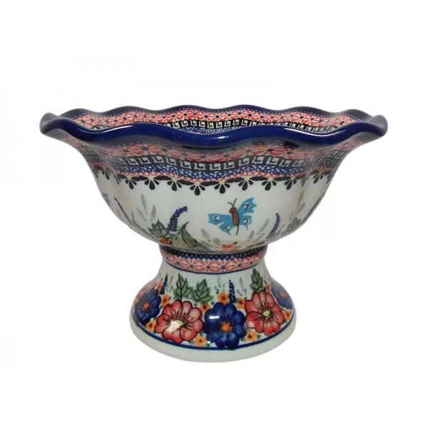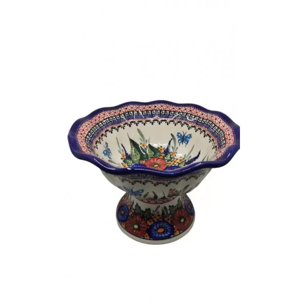 Ceramiczna owocarka o pojemności 1500 ml, dekorowana ręcznie w sielskim klimacie fiołków od Zakładów Ceramicznych Bolesławiec.